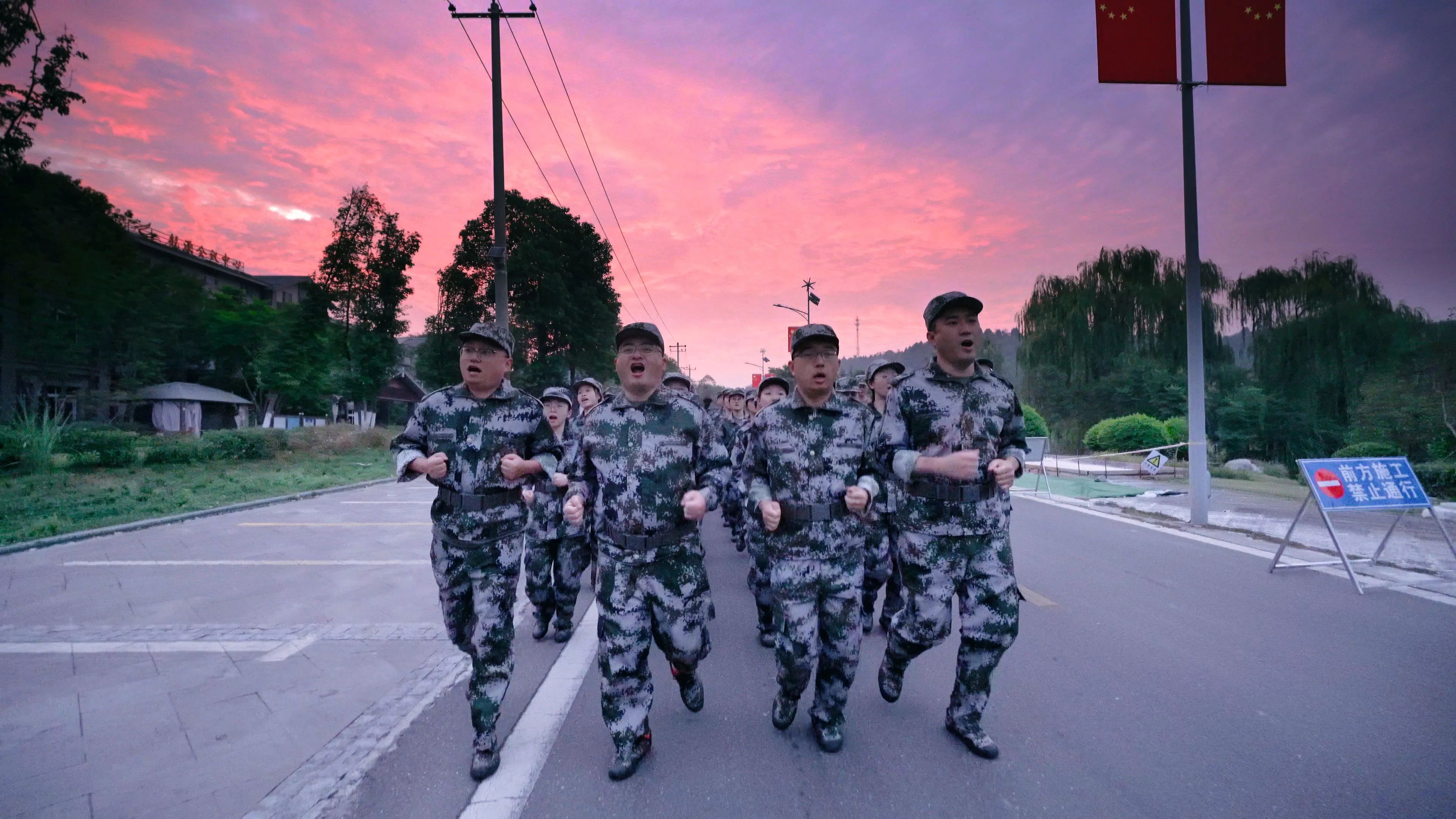 草木溫潤,朝陽初升。清晨6:30,公路上便躍動起一抹抹生動的綠影,身穿迷彩服,新兵們精神抖擻全力奔跑,在有力的腳步聲中,迎來今日淬煉的序曲。
